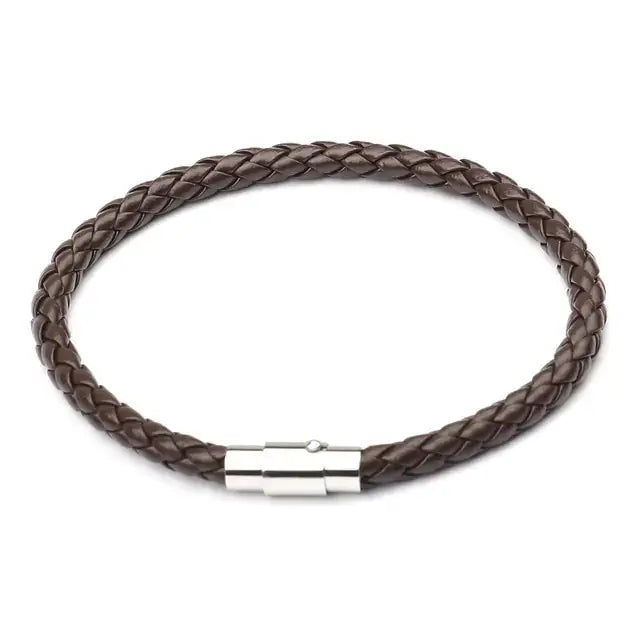 Stylish brown braided bracelet with a magnetic buckle closure, offering a sleek and modern design for easy wear.