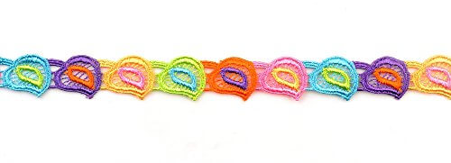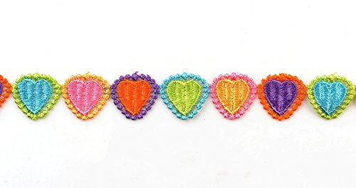 Colorful heart lace trim for sewing and crafts, ideal for bridal and costume design, home decor, or gift basket decoration.