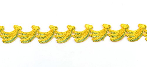 eZthings designer lace trims for sewing and crafts, yellow and green embroidered pattern, ideal for wedding and home decor projects.