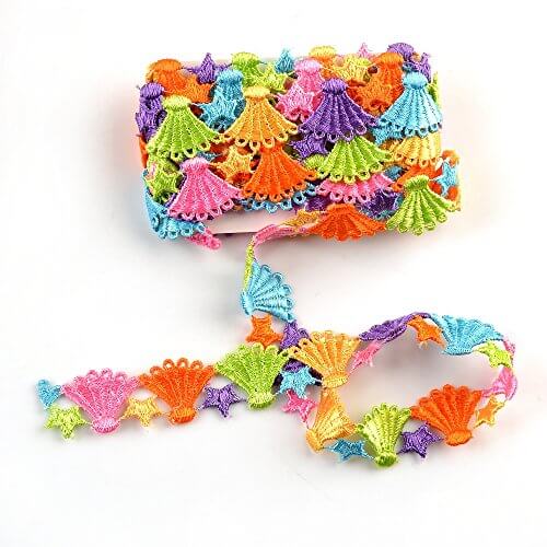 Colorful embroidery lace trim for sewing and crafts featuring vibrant scalloped patterns from eZthings.