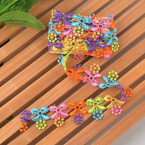 eZthings colorful embroidered lace trim ribbon for sewing, craft, and fashion projects featuring floral pattern designs.