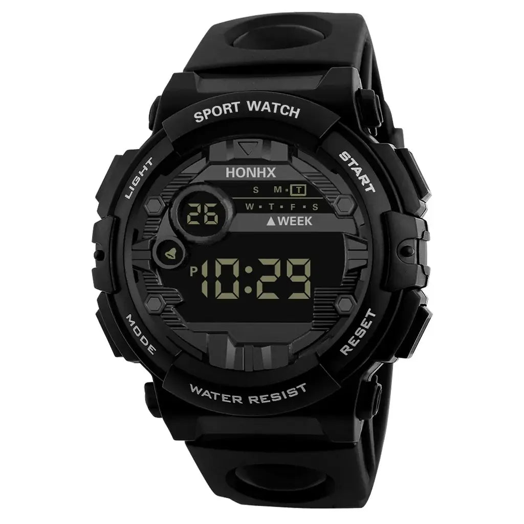 Men's Digital LED Watch with water-resistant design, featuring a 12/24 hour LED display, perfect for the modern man's active lifestyle.