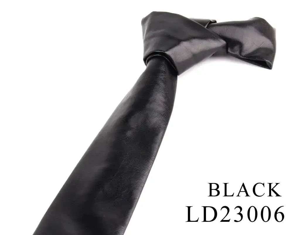 Black polyurethane leather tie for men, vegan-friendly and imported, product code LD23006, offering a sleek and modern style.