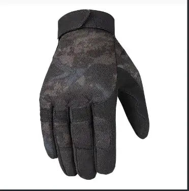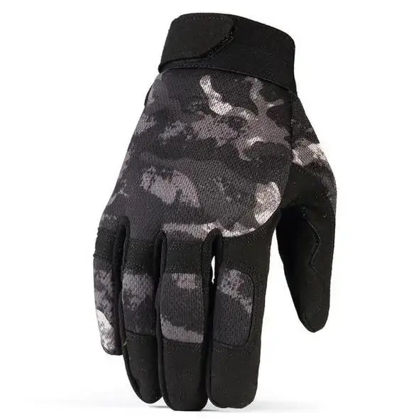 Black camo OPZ Tactical Gloves for precision, durability, and grip, ideal for military and paintball use.