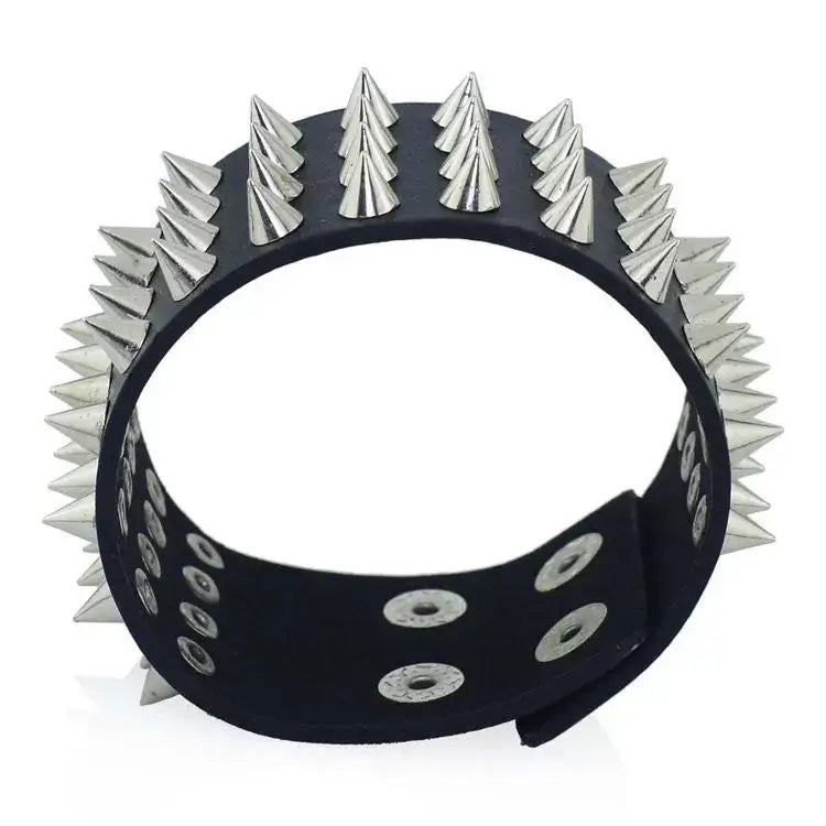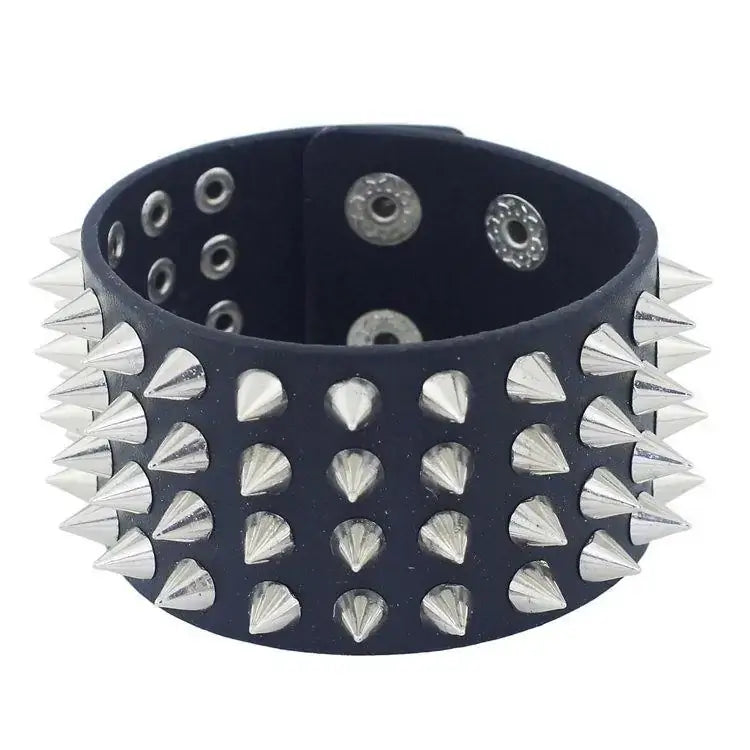 Channel your inner rockstar with our Faux Leather Bracelet with Spikes. Designed for those who love to make a statement, this bracelet is perfect for concerts, parties, or everyday wear. Its comfortable fit and secure clasp ensure it stays in place no matter how wild your night gets. Let this bold piece of jewelry be the highlight of your outfit and showcase your fearless personality.