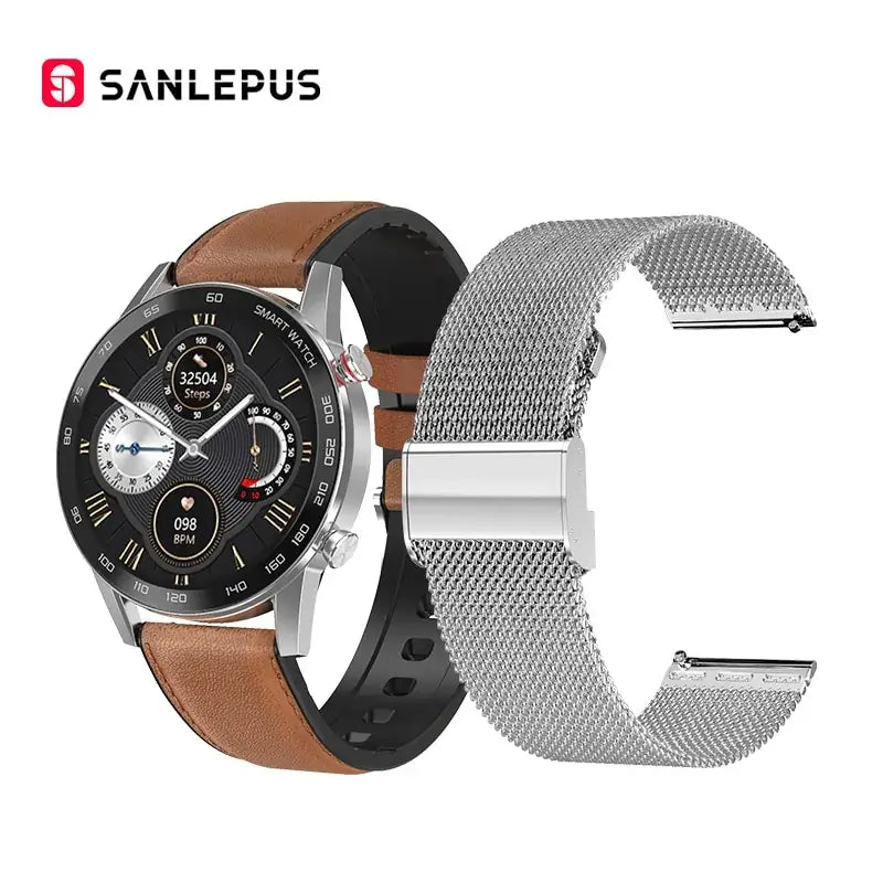 Business Smart Watch with leather and mesh straps, compatible with iOS and Android, featuring advanced health functions and timeless style.