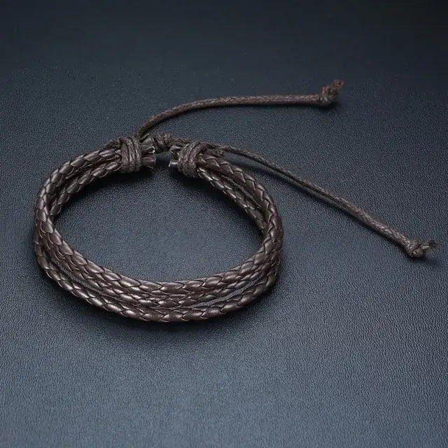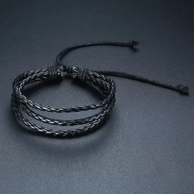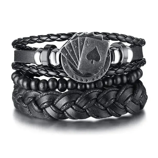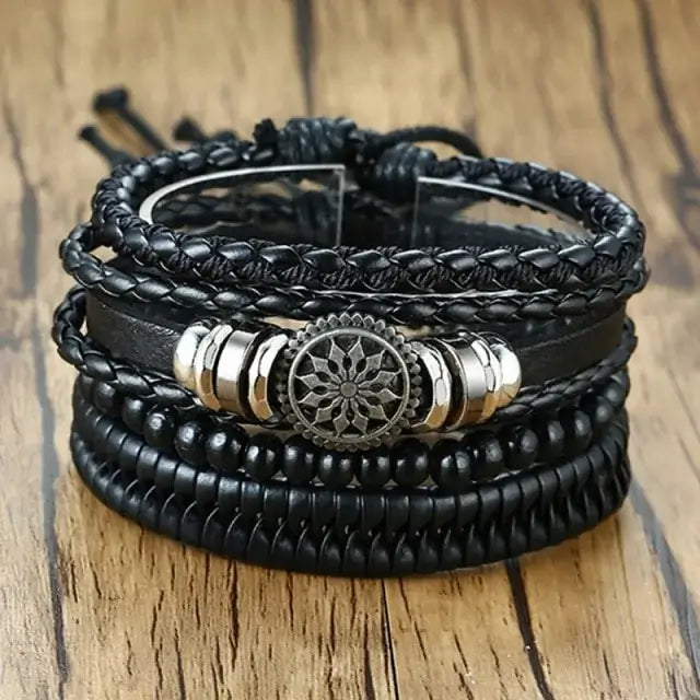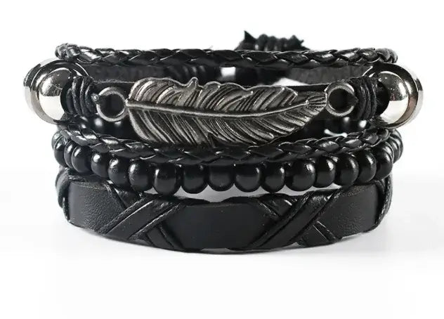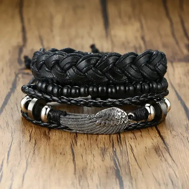 Cada pulsera del juego presenta detalles en cuero de alta calidad y aleación de zinc, lo que garantiza durabilidad y una estética audaz. El cierre con cordones añade un toque de elegancia robusta, perfecto para el uso diario o para ocasiones especiales.