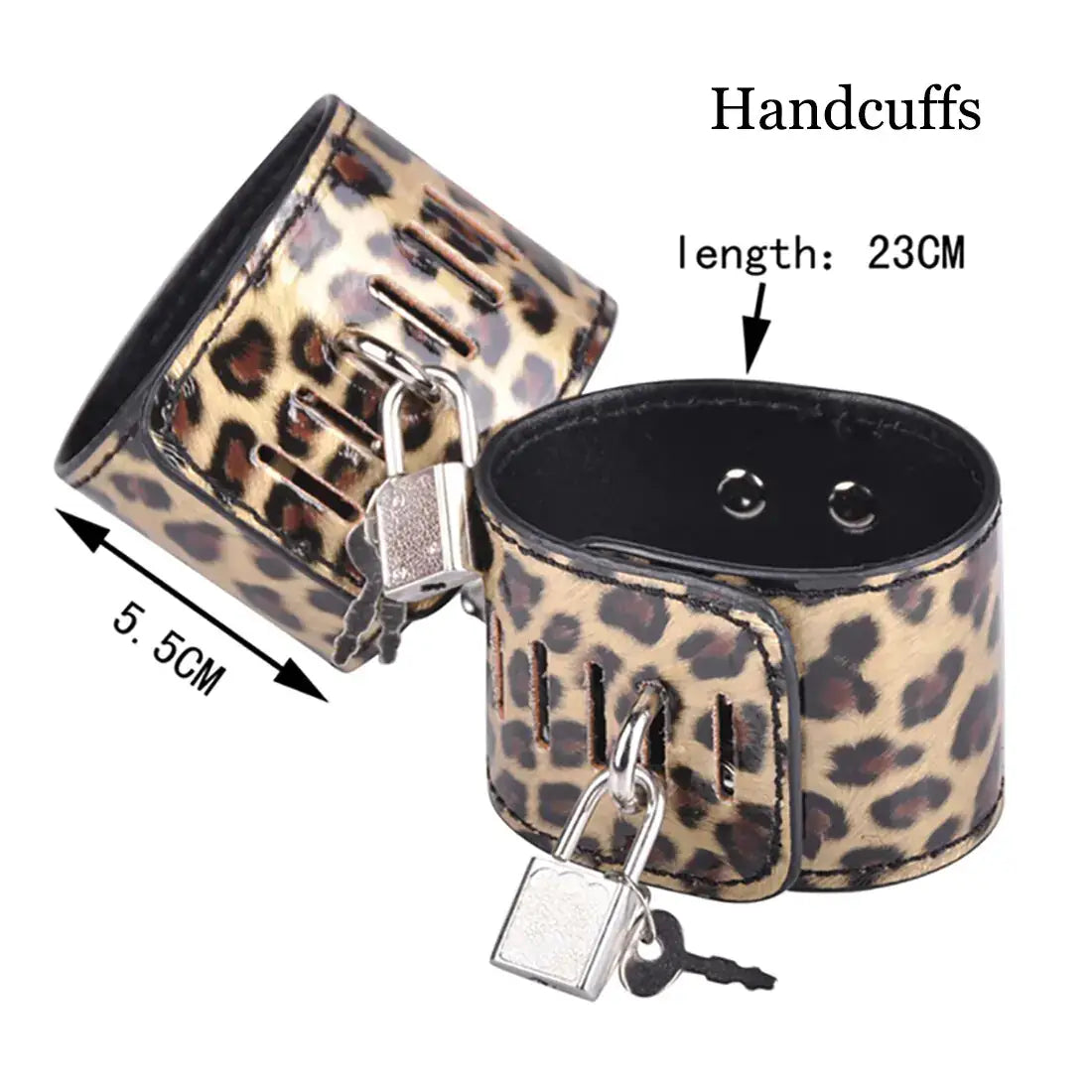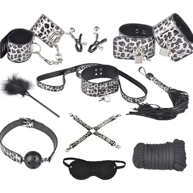 Experimente la combinación definitiva de sensualidad y aventura con nuestro juego de bondage de cuero de 10 piezas. Eleva tus momentos íntimos con esta colección de accesorios BDSM premium diseñados para encender la pasión y la exploración.