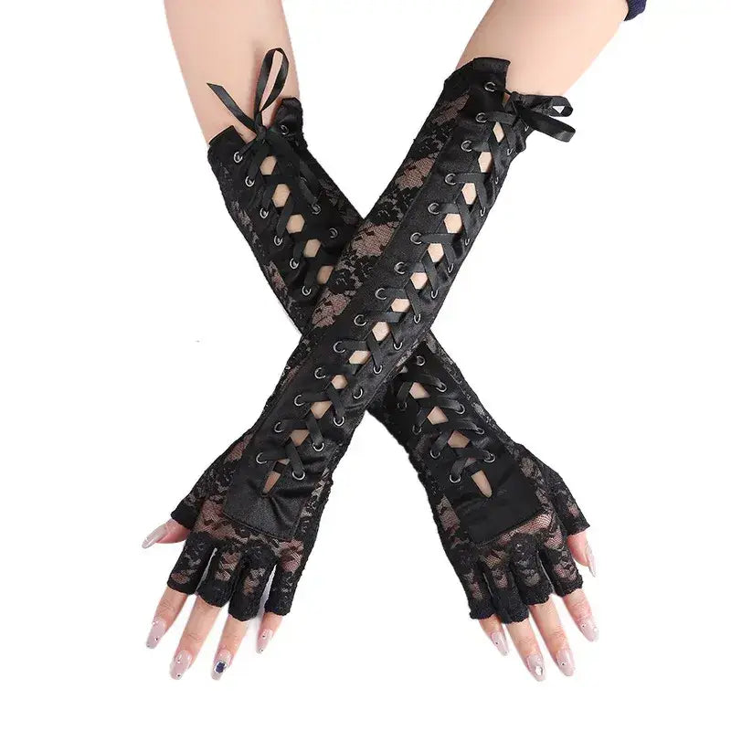 - Une paire de gants longs en dentelle à demi-doigts
