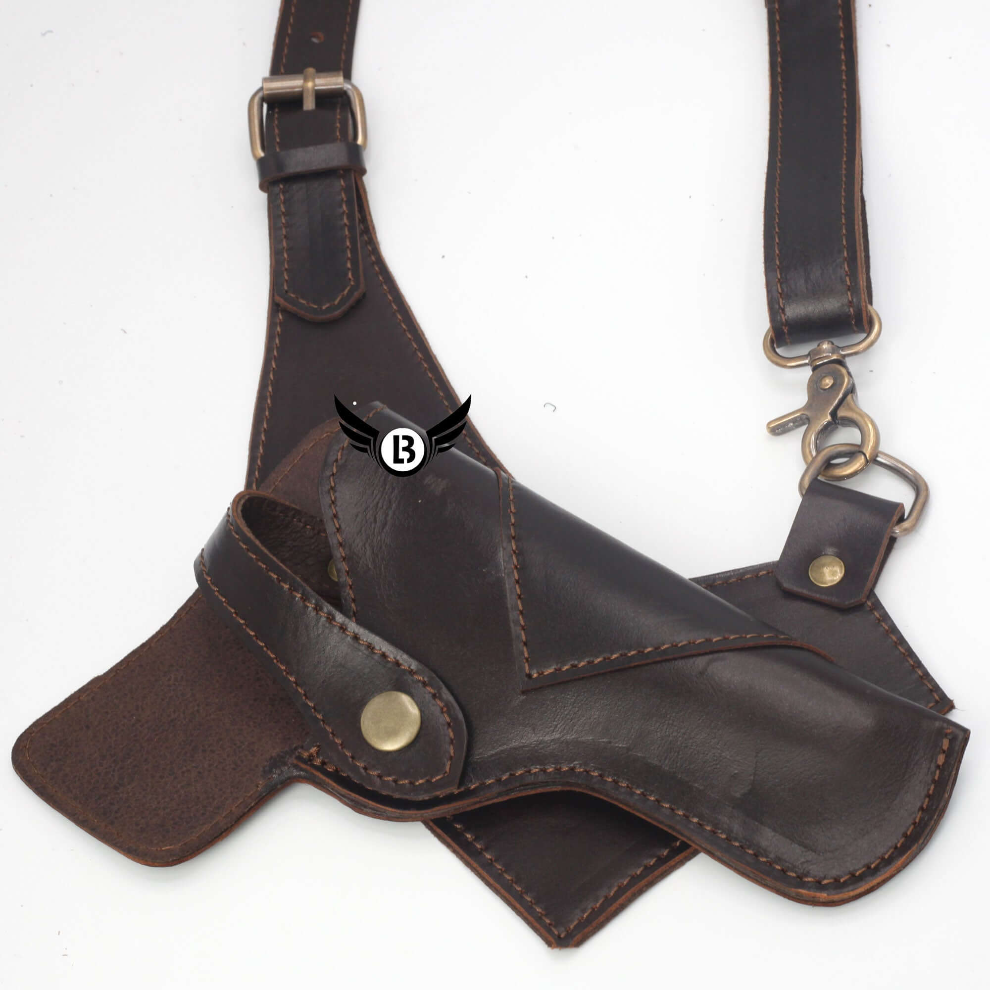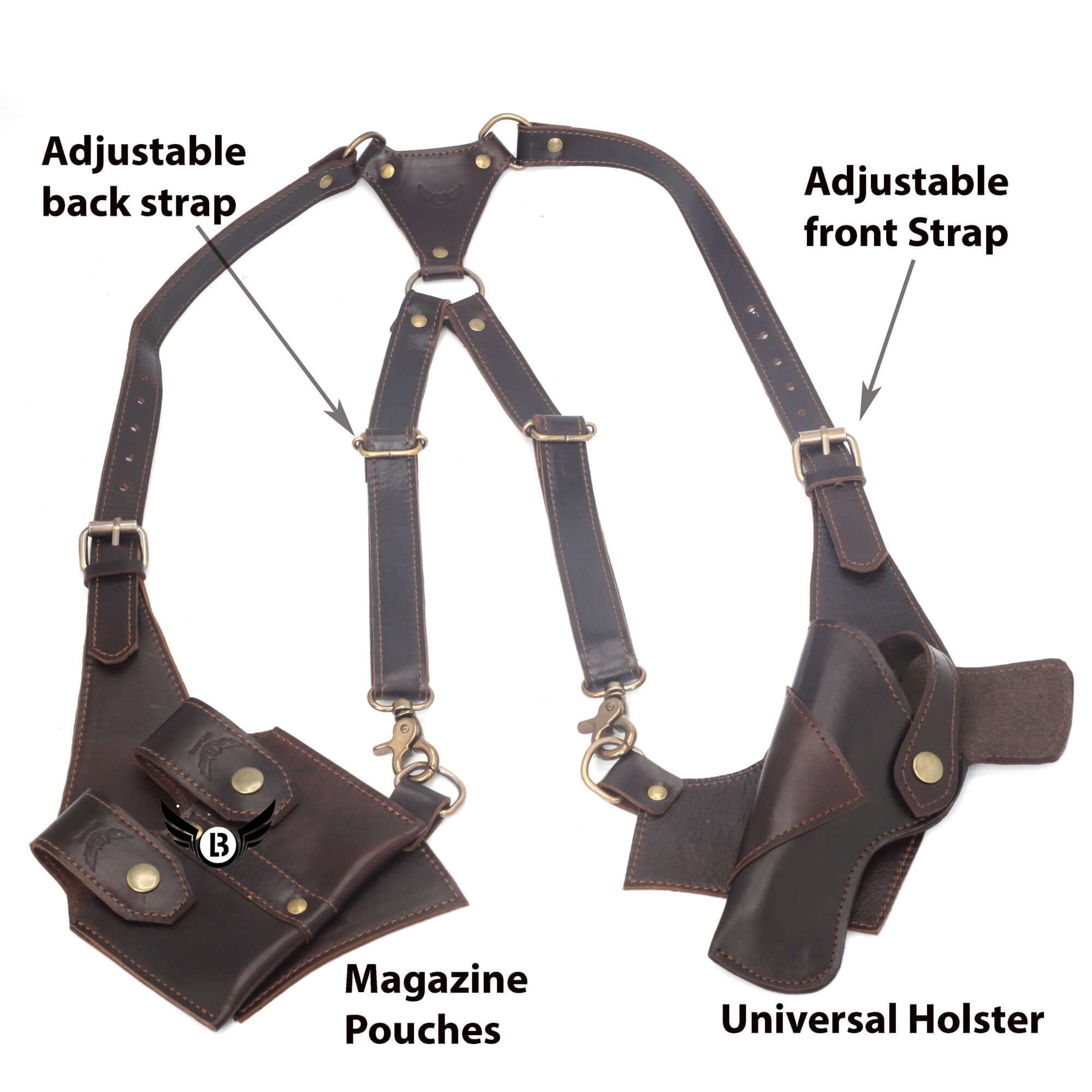 Handmade, Universal, Leather Shoulder Holster: Our shoulder holster is handcrafted from premium, genuine cowhide leather, ensuring durability and a luxurious feel. It is designed to fit all size of handguns. The vertical concealed holster is versatile and you can chose for left handers or right handers.
