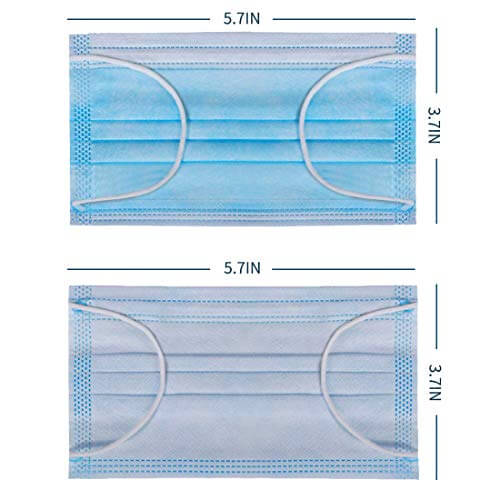 Professional Disposable 3 Ply Filter Face Masks for Crafting, 50 Pack, Blue, with Dimensions Displayed.