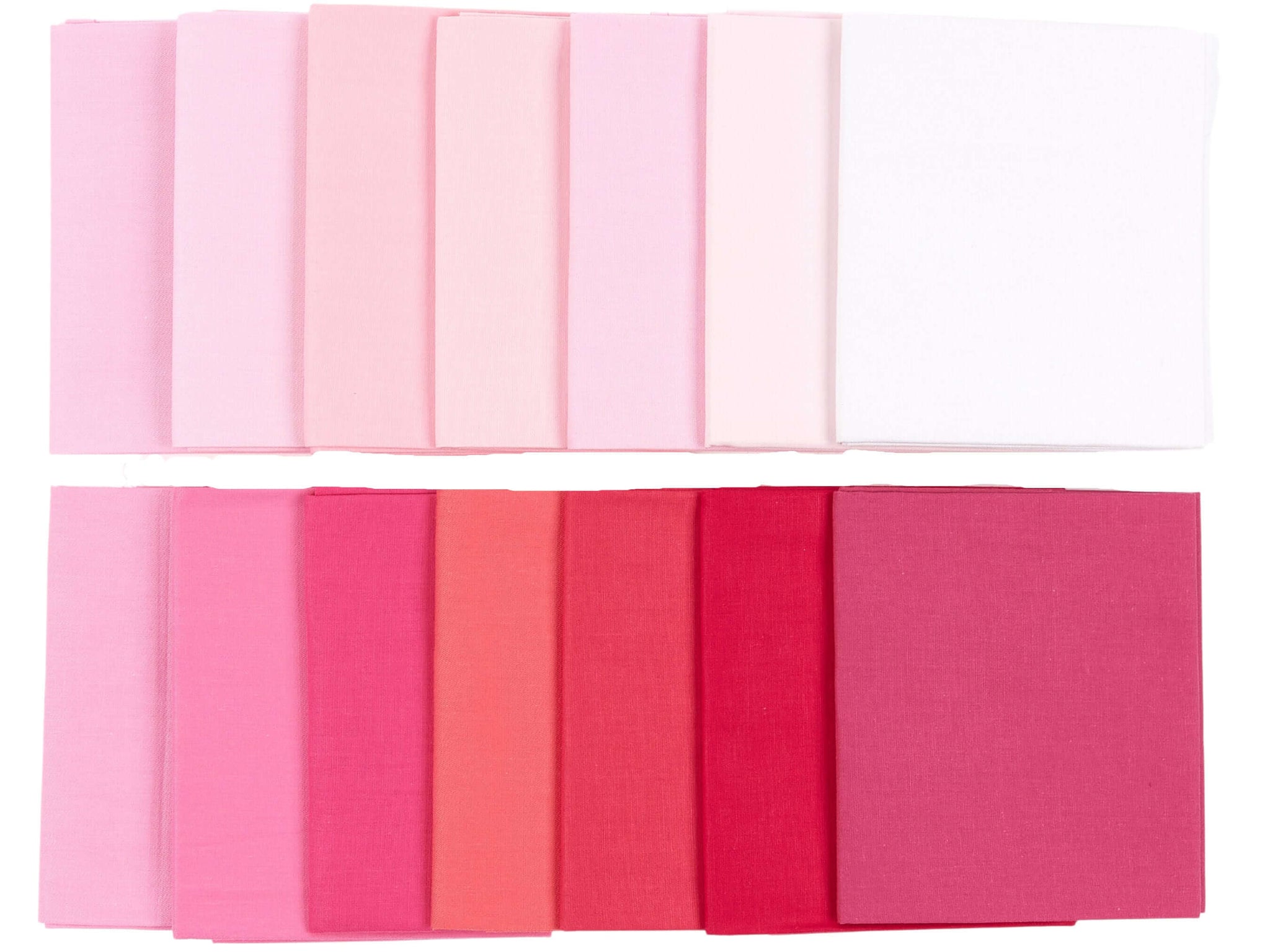 Fat Quarter Bundle of 100% Cotton in shades of pink and magenta, perfect for quilting and crafting. Includes 14 pieces, each 20.8 x 18.1 inches.